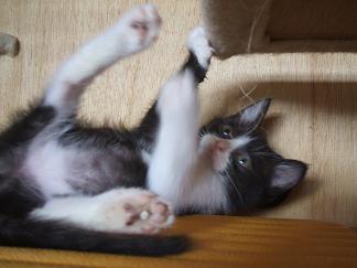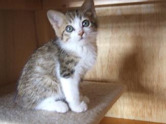 下:メス 推定2ヶ月 ちょっと遠慮がちに甘えてきます。 でも、とても遊び好きです。 |