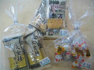 チョコレートが苦手な方には、1万円札の袋に包まれた大金持ちあられをご用意しております(o´ω`o)♪