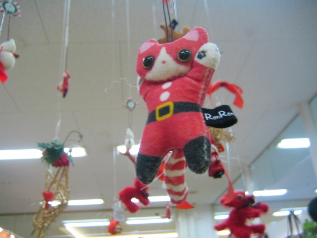 ↑レジの上にぶら下がっているクリスマス仕様のにゃんこたちです(=゚ω゚)ノ