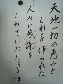 その日から下の娘は家でも食事の前には必ず唱えます。覚えるまでは紙を見ながら・・・