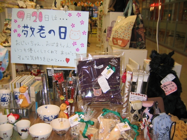 そんな彼は現在前のテーブルの敬老の日コーナーにディスプレイされております!